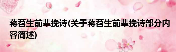 蒋苕生前辈挽诗(关于蒋苕生前辈挽诗部分内容简述)
