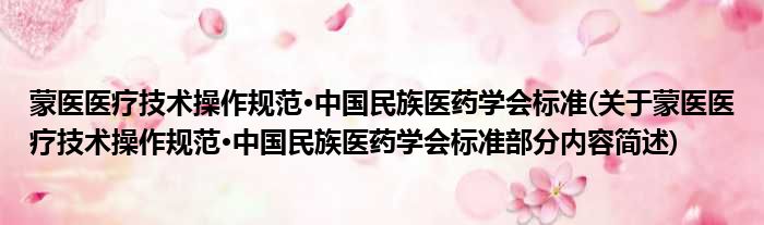蒙医医疗技术操作规范·中国民族医药学会标准(关于蒙医医疗技术操作规范·中国民族医药学会标准部分内容简述)