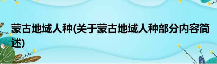 蒙古地域人种(关于蒙古地域人种部分内容简述)