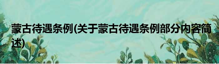 导读 大家好,今天小方来说说一篇关于蒙古待遇条例,关于蒙古待遇条例部分内容简述的文章,那么现在就为大家来简单介绍下,希望对各位小伙伴们有