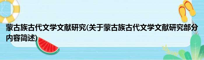 蒙古族古代文学文献研究(关于蒙古族古代文学文献研究部分内容简述)