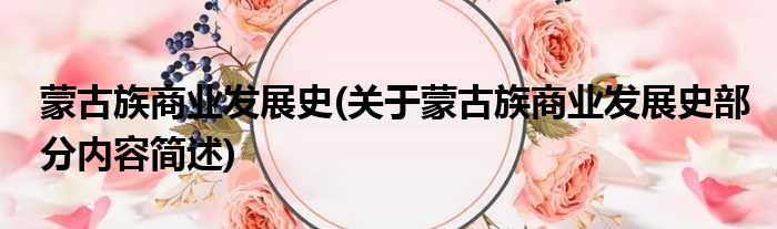 蒙古族商业发展史(关于蒙古族商业发展史部分内容简述)