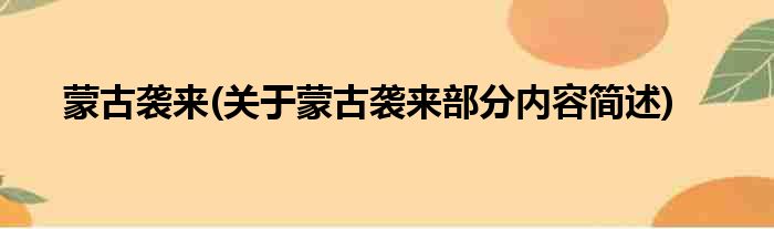 蒙古袭来(关于蒙古袭来部分内容简述)