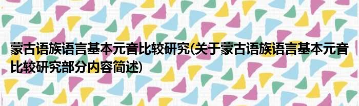 导读 大家好,今天小方来说说一篇关于蒙古语族语言基本元音比较研究,关于蒙古语族语言基本元音比较研究部分内容简述的文章,那么现在就为大家来