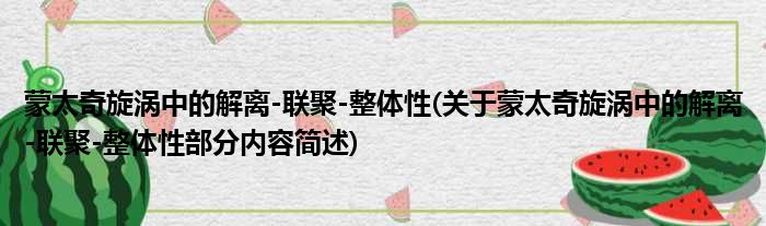 蒙太奇旋涡中的解离-联聚-整体性(关于蒙太奇旋涡中的解离-联聚-整体性部分内容简述)