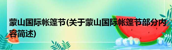 蒙山国际帐篷节(关于蒙山国际帐篷节部分内容简述)