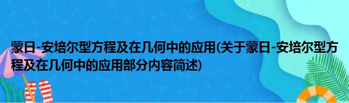 导读 大家好,今天小方来说说一篇关于蒙日-安培尔型方程及在几何中的应用,关于蒙日-安培尔型方程及在几何中的应用部分内容简述的文章,那么现在