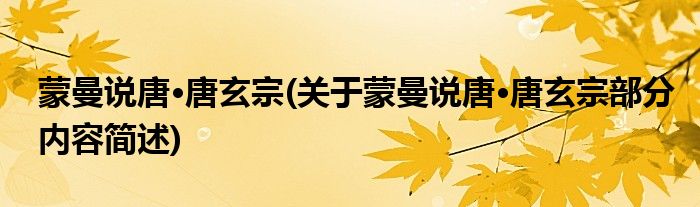 导读 大家好,今天小方来说说一篇关于蒙曼说唐·唐玄宗,关于蒙曼说唐·唐玄宗部分内容简述的文章,那么现在就为大家来简单介绍下,希望对各位小