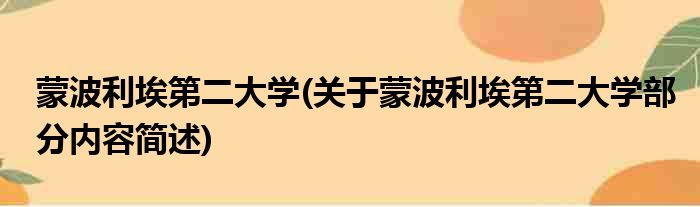 导读 大家好,今天小方来说说一篇关于蒙波利埃第二大学,关于蒙波利埃第二大学部分内容简述的文章,那么现在就为大家来简单介绍下,希望对各位小