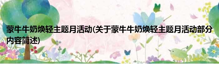 蒙牛牛奶焕轻主题月活动(关于蒙牛牛奶焕轻主题月活动部分内容简述)