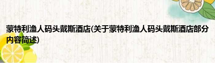 蒙特利渔人码头戴斯酒店(关于蒙特利渔人码头戴斯酒店部分内容简述)
