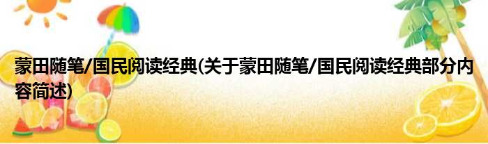 蒙田随笔/国民阅读经典(关于蒙田随笔/国民阅读经典部分内容简述)
