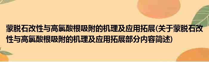 蒙脱石改性与高氯酸根吸附的机理及应用拓展(关于蒙脱石改性与高氯酸根吸附的机理及应用拓展部分内容简述)