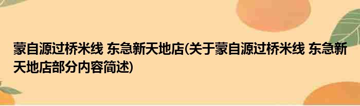 蒙自源过桥米线 东急新天地店(关于蒙自源过桥米线 东急新天地店部分内容简述)