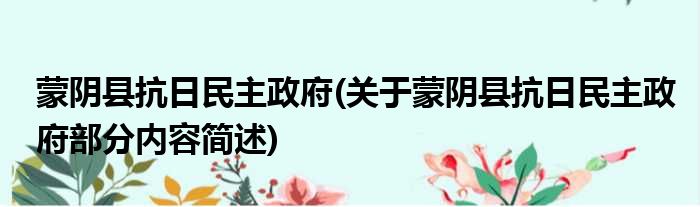 蒙阴县抗日民主政府(关于蒙阴县抗日民主政府部分内容简述)
