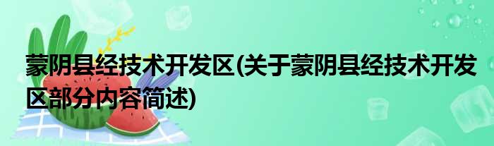 蒙阴县经技术开发区(关于蒙阴县经技术开发区部分内容简述)