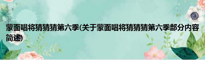 蒙面唱将猜猜猜第六季(关于蒙面唱将猜猜猜第六季部分内容简述)