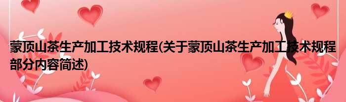 蒙顶山茶生产加工技术规程(关于蒙顶山茶生产加工技术规程部分内容简述)