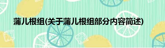 大家好,今天小方来说说一篇关于蒲儿根组,关于蒲儿根组部分内容简述的文章,那么现在就为大家来简单介绍下,希望对各位小伙伴们有所帮助。