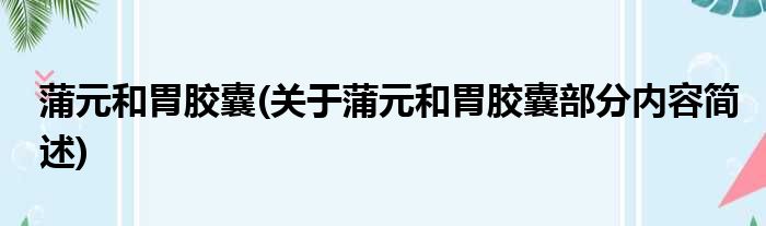蒲元和胃胶囊(关于蒲元和胃胶囊部分内容简述)