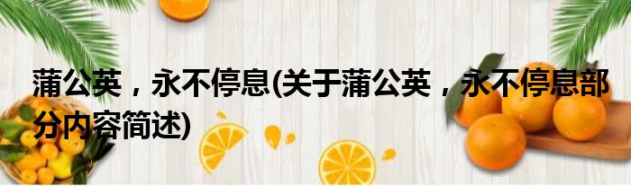 蒲公英,永不停息(关于蒲公英,永不停息部分内容简述)