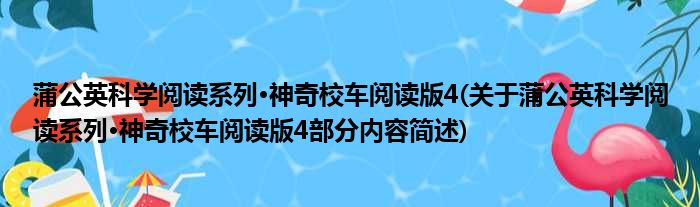 导读 大家好,今天小方来说说一篇关于蒲公英科学阅读系列·神奇校车阅读版4,关于蒲公英科学阅读系列·神奇校车阅读版4部分内容简述的文章,那么