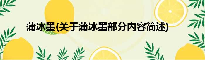 蒲冰墨(关于蒲冰墨部分内容简述)