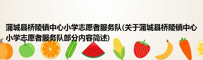 蒲城县桥陵镇中心小学志愿者服务队(关于蒲城县桥陵镇中心小学志愿者服务队部分内容简述)