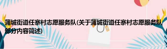 蒲城街道任寨村志愿服务队(关于蒲城街道任寨村志愿服务队部分内容简述)