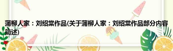 大家好,今天小方来说说一篇关于蒲柳人家:刘绍棠作品,关于蒲柳人家:刘绍棠作品部分内容简述的文章,那么现在就为大家来简单介绍下,希望对各位小伙伴们有所帮助。