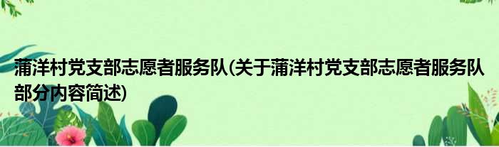 蒲洋村党支部志愿者服务队(关于蒲洋村党支部志愿者服务队部分内容简述)