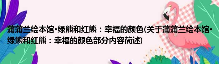 导读 大家好,今天小方来说说一篇关于蒲蒲兰绘本馆·绿熊和红熊:幸福的颜色,关于蒲蒲兰绘本馆·绿熊和红熊:幸福的颜色部分内容简述的文章,那