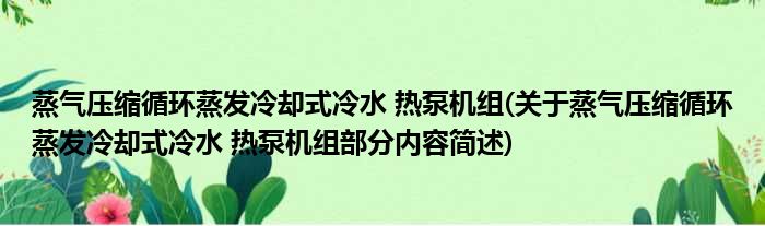 蒸气压缩循环蒸发冷却式冷水 热泵机组(关于蒸气压缩循环蒸发冷却式冷水 热泵机组部分内容简述)