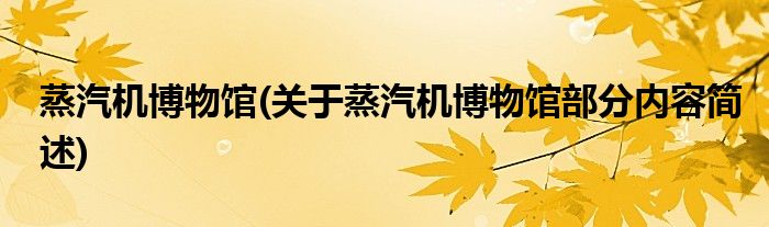 蒸汽机博物馆(关于蒸汽机博物馆部分内容简述)