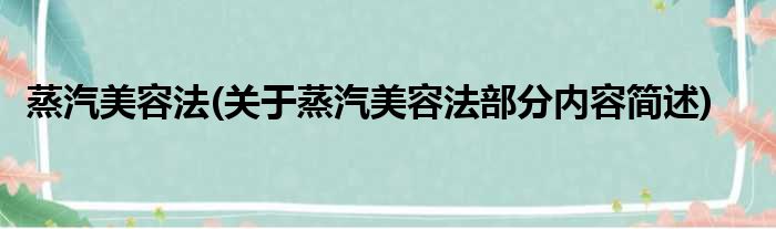 蒸汽美容法(关于蒸汽美容法部分内容简述)