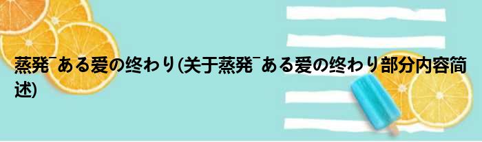 导读 大家好,今天小方来说说一篇关于蒸発―ある爱の终わり,关于蒸発―ある爱の终わり部分内容简述的文章,那么现在就为大家来简单介绍下,希望