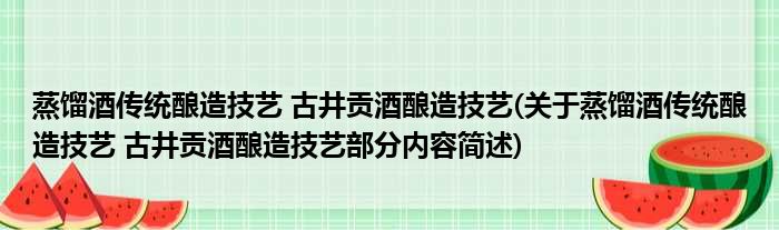 蒸馏酒传统酿造技艺 古井贡酒酿造技艺(关于蒸馏酒传统酿造技艺 古井贡酒酿造技艺部分内容简述)