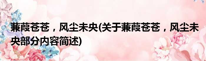 蒹葭苍苍,风尘未央(关于蒹葭苍苍,风尘未央部分内容简述)