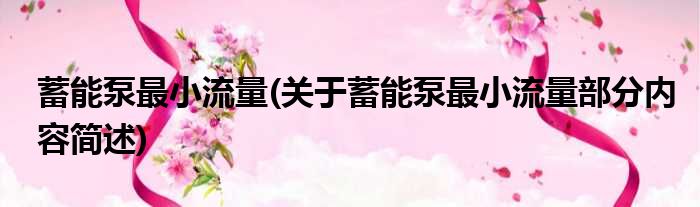 蓄能泵最小流量(关于蓄能泵最小流量部分内容简述)