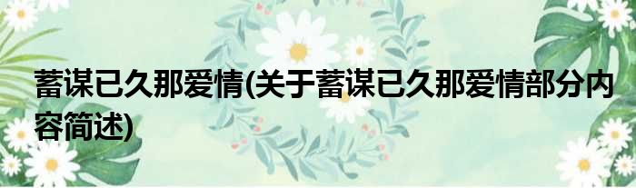 蓄谋已久那爱情(关于蓄谋已久那爱情部分内容简述)