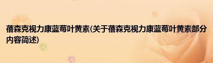 蓓森克视力康蓝莓叶黄素(关于蓓森克视力康蓝莓叶黄素部分内容简述)