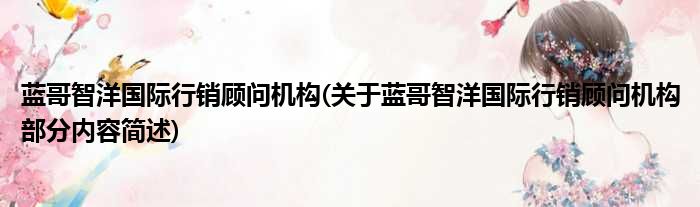 蓝哥智洋国际行销顾问机构(关于蓝哥智洋国际行销顾问机构部分内容简述)