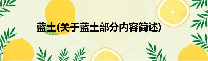 导读 大家好,今天小方来说说一篇关于蓝土,关于蓝土部分内容简述的文章,那么现在就为大家来简单介绍下,希望对各位小伙伴们有所帮助。