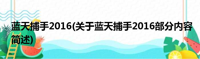 蓝天捕手2016(关于蓝天捕手2016部分内容简述)