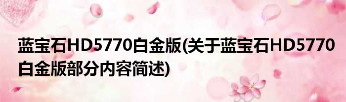 蓝宝石HD5770白金版(关于蓝宝石HD5770白金版部分内容简述)