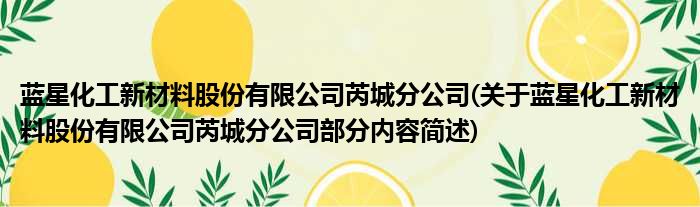 蓝星化工新材料股份有限公司芮城分公司(关于蓝星化工新材料股份有限公司芮城分公司部分内容简述)