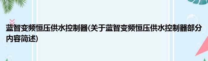 蓝智变频恒压供水控制器(关于蓝智变频恒压供水控制器部分内容简述)