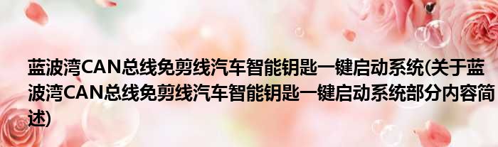 蓝波湾CAN总线免剪线汽车智能钥匙一键启动系统(关于蓝波湾CAN总线免剪线汽车智能钥匙一键启动系统部分内容简述)
