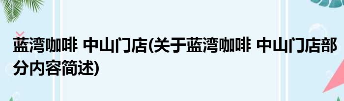 蓝湾咖啡 中山门店(关于蓝湾咖啡 中山门店部分内容简述)