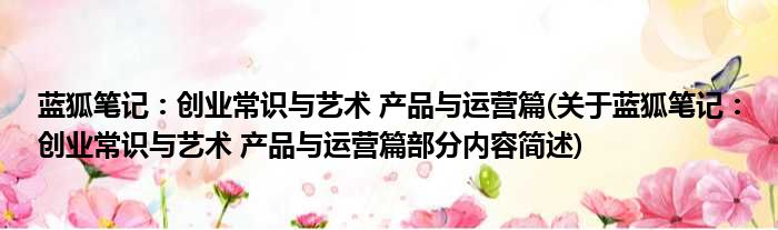 蓝狐笔记:创业常识与艺术 产品与运营篇(关于蓝狐笔记:创业常识与艺术 产品与运营篇部分内容简述)